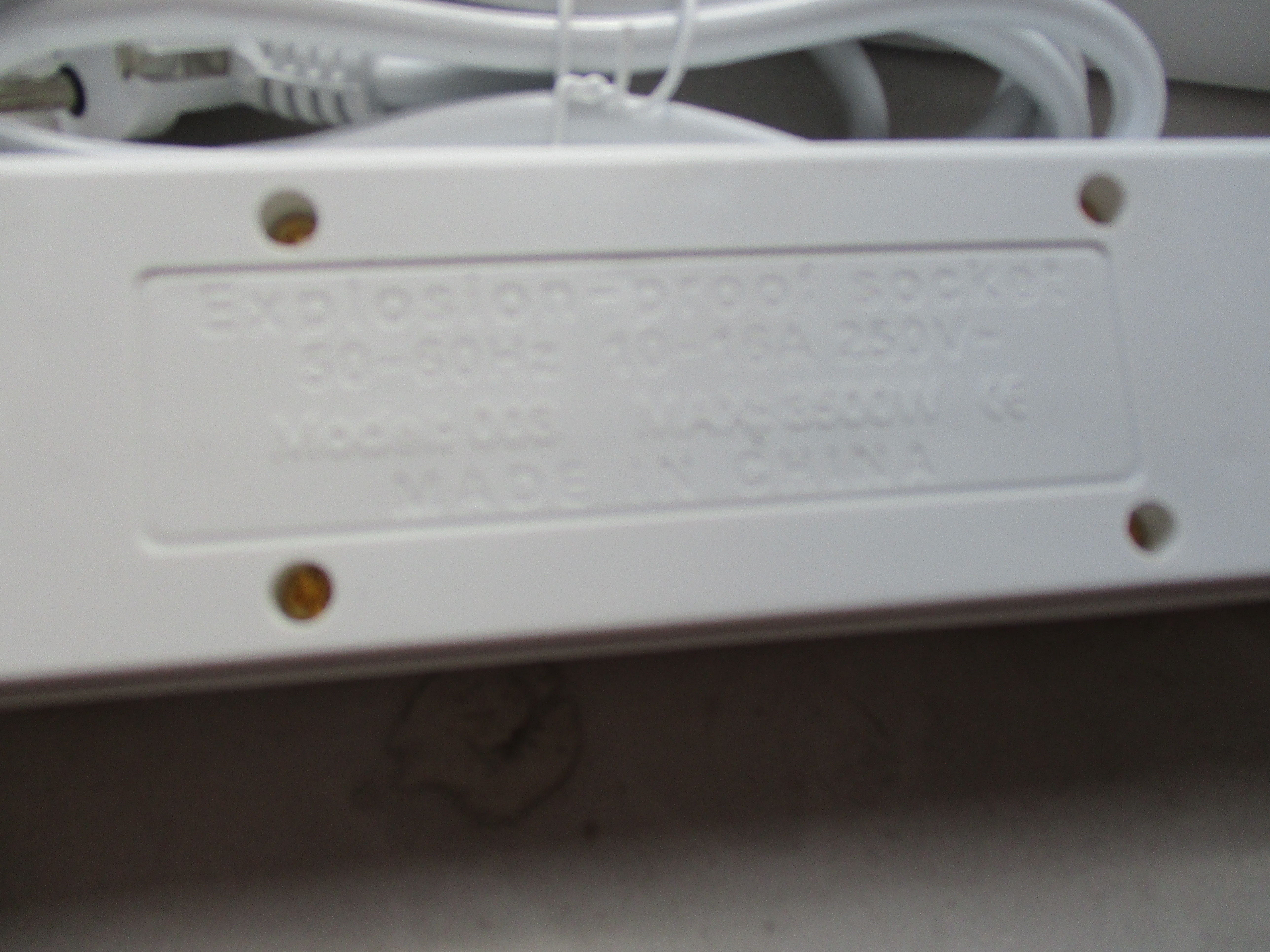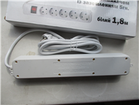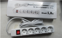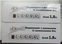 подовжувач з вимикачем із заземленням «ARKGIACL», 5 гн., білий, 1,8 м, 50-60 Hz, 10-16 A, 250 V, дата виготовлення листопад 2022, артикул MSJ 0608006, модель №003, штриховий код 2022012801855, виробник: Іву Джежіанг КНР, імпортер: ТОВ «П.Г.С. Трейдінг», Україна, 61003, м. Харків, вул. Короленка, 25, прим. 16, тел.+380504455927